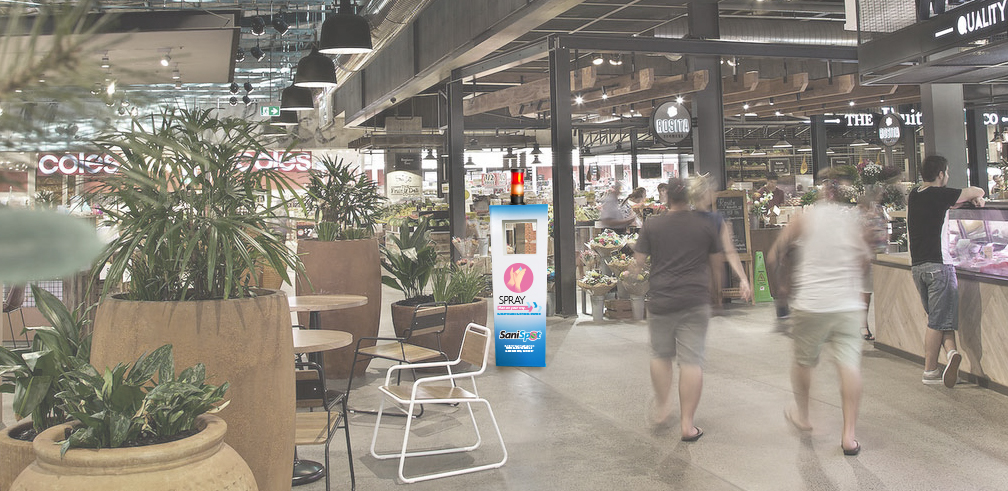 SaniSpot Stations are highly visible, with hands free foot operated spray, allowing customers to easily identify the sanitising spot while providing the businesses with high volume 5L or 20L tanks that require minimal upkeep due to ease of use and our selection of sanitising liquid.